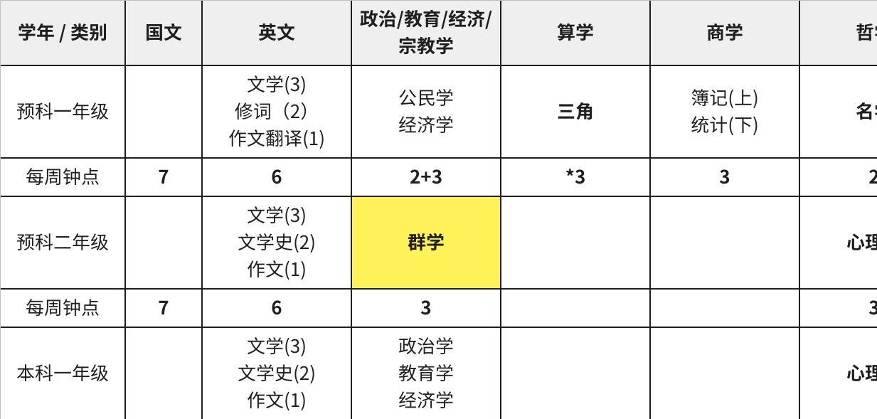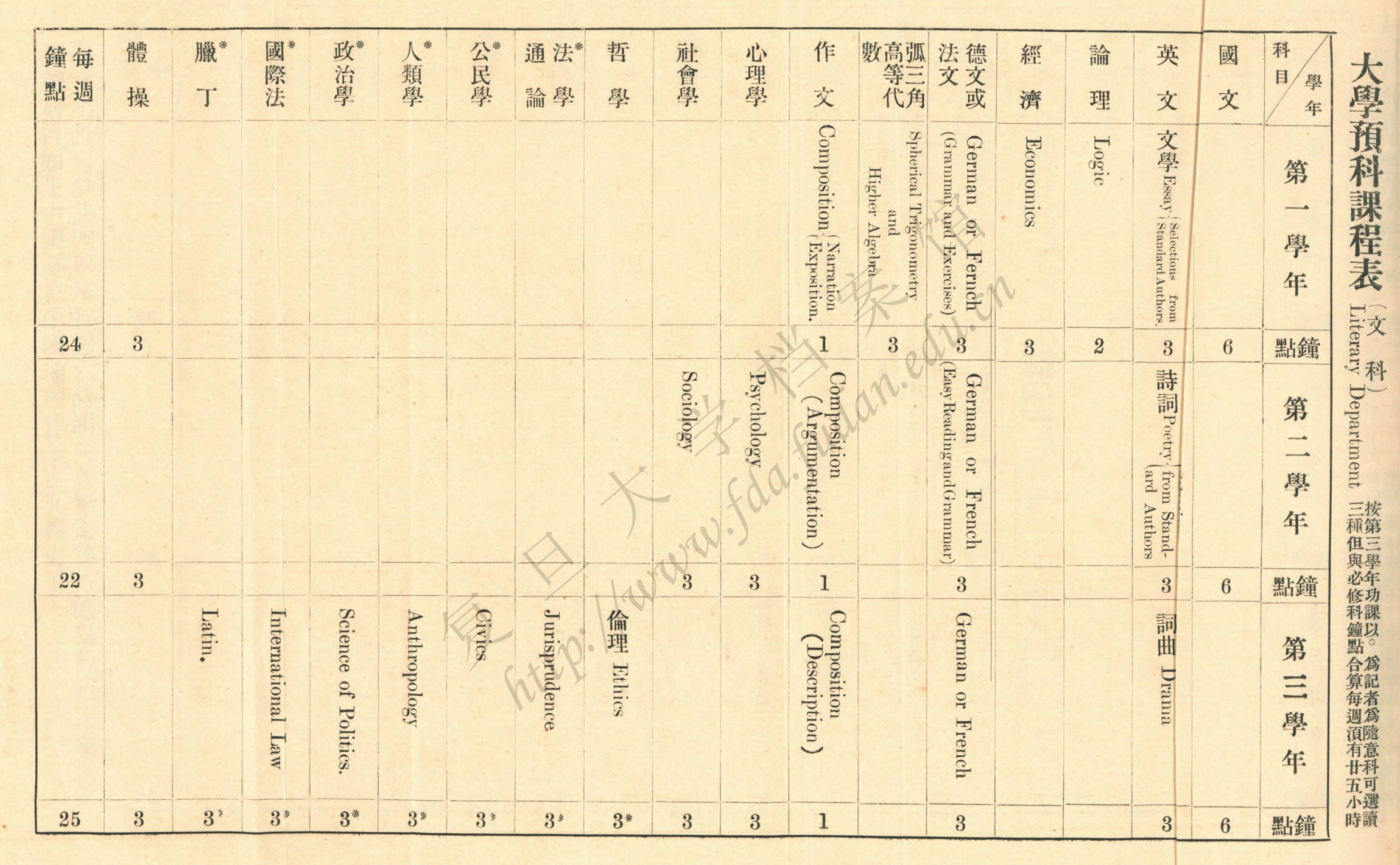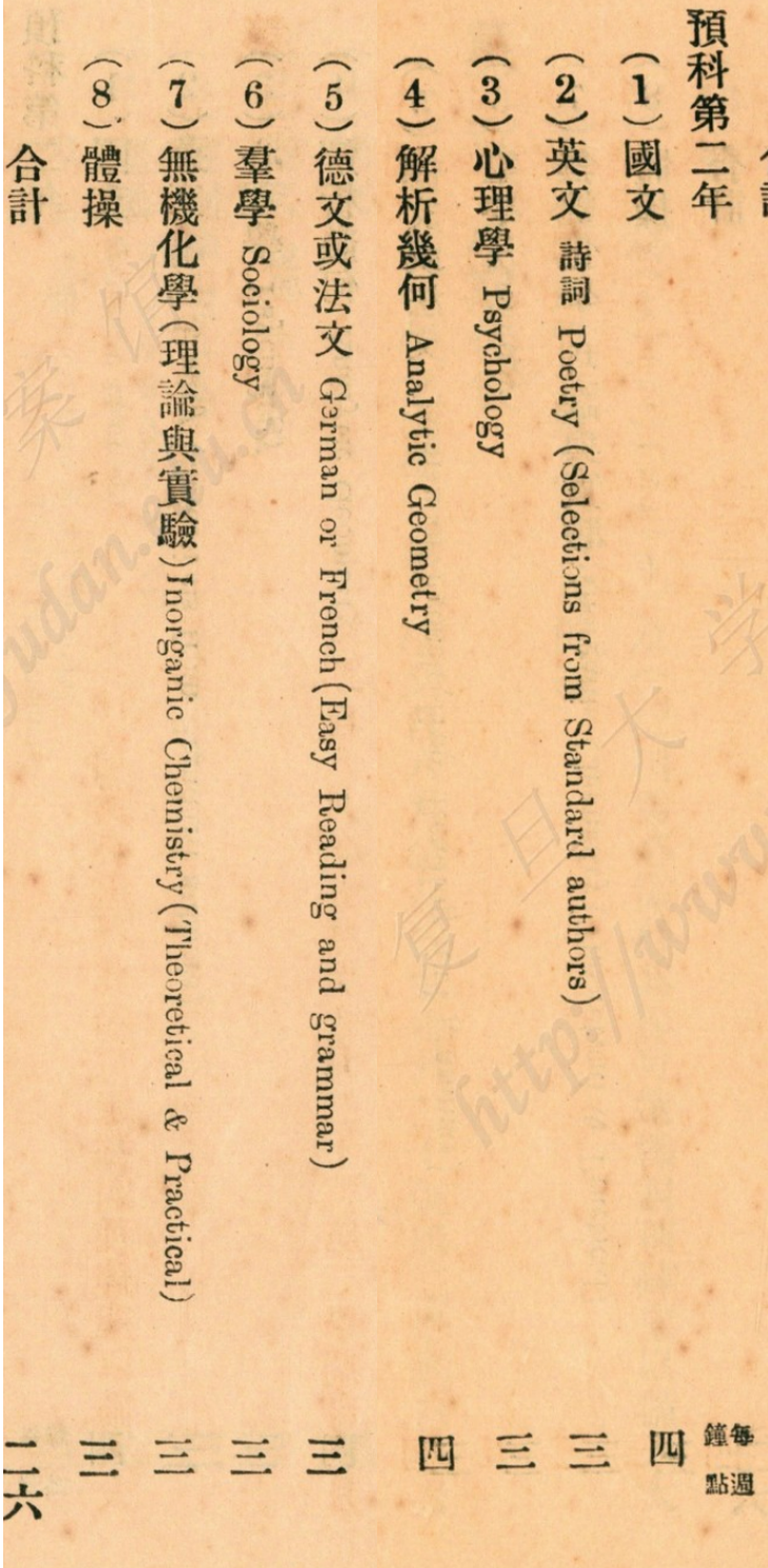 1913年的复旦公学章程,明确将群学称为Sociology,同列为预科第二年所修课程。此时预科文理合并,每周总学时调整为26个小时,群学依然为3小时。