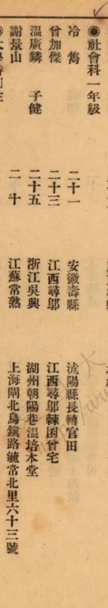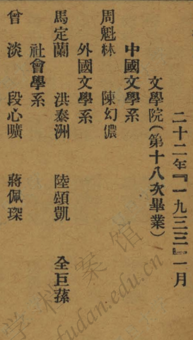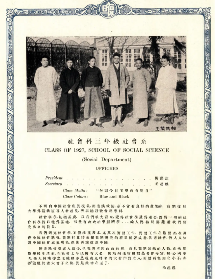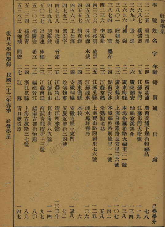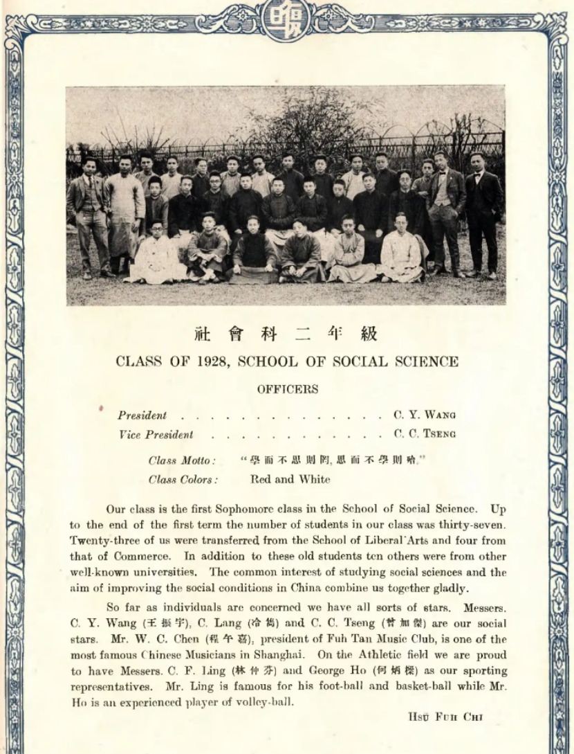 在《复旦大学1922年刊》的文科级史中,有提到对社会学感兴趣的学生