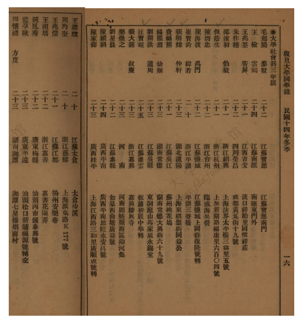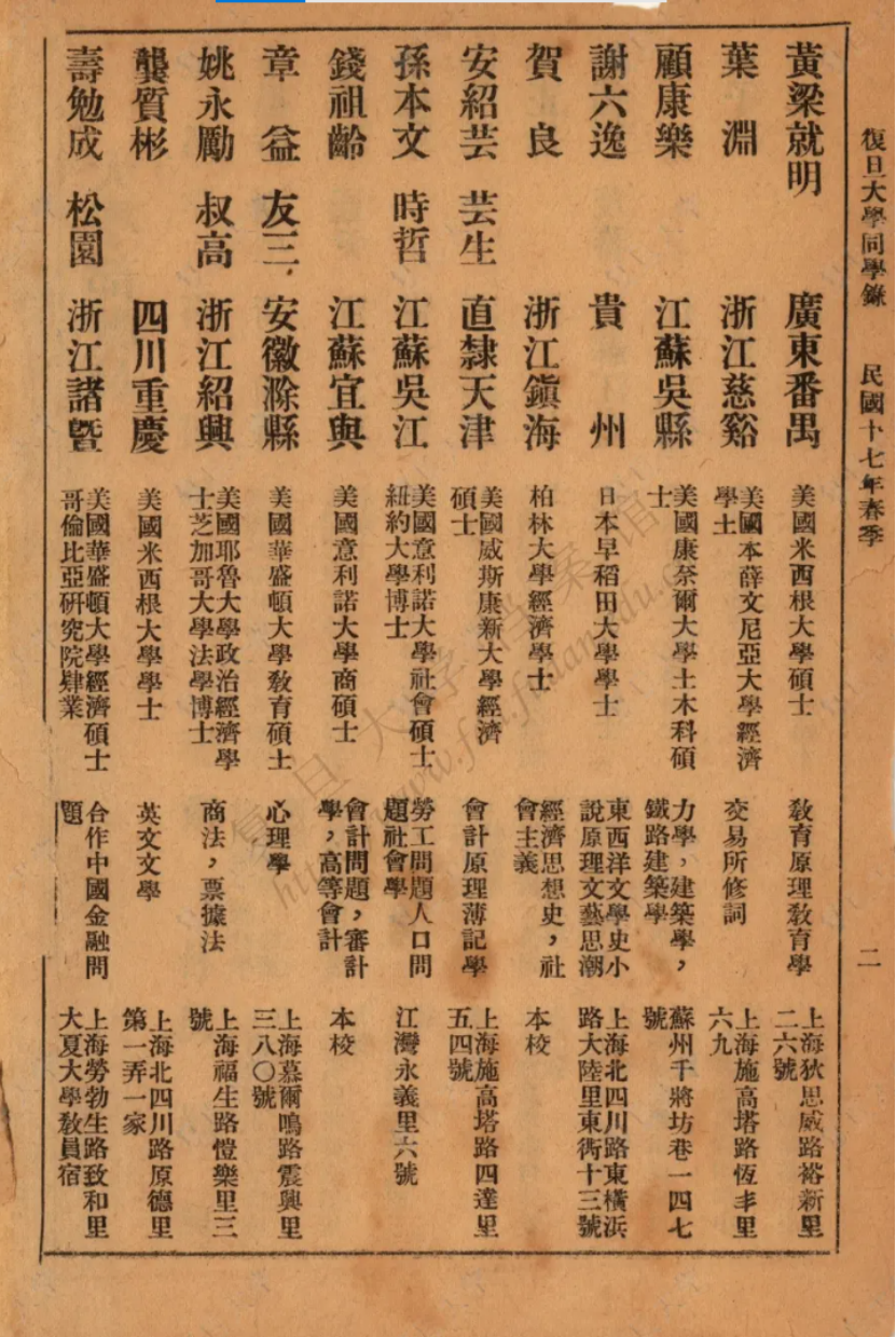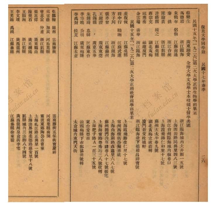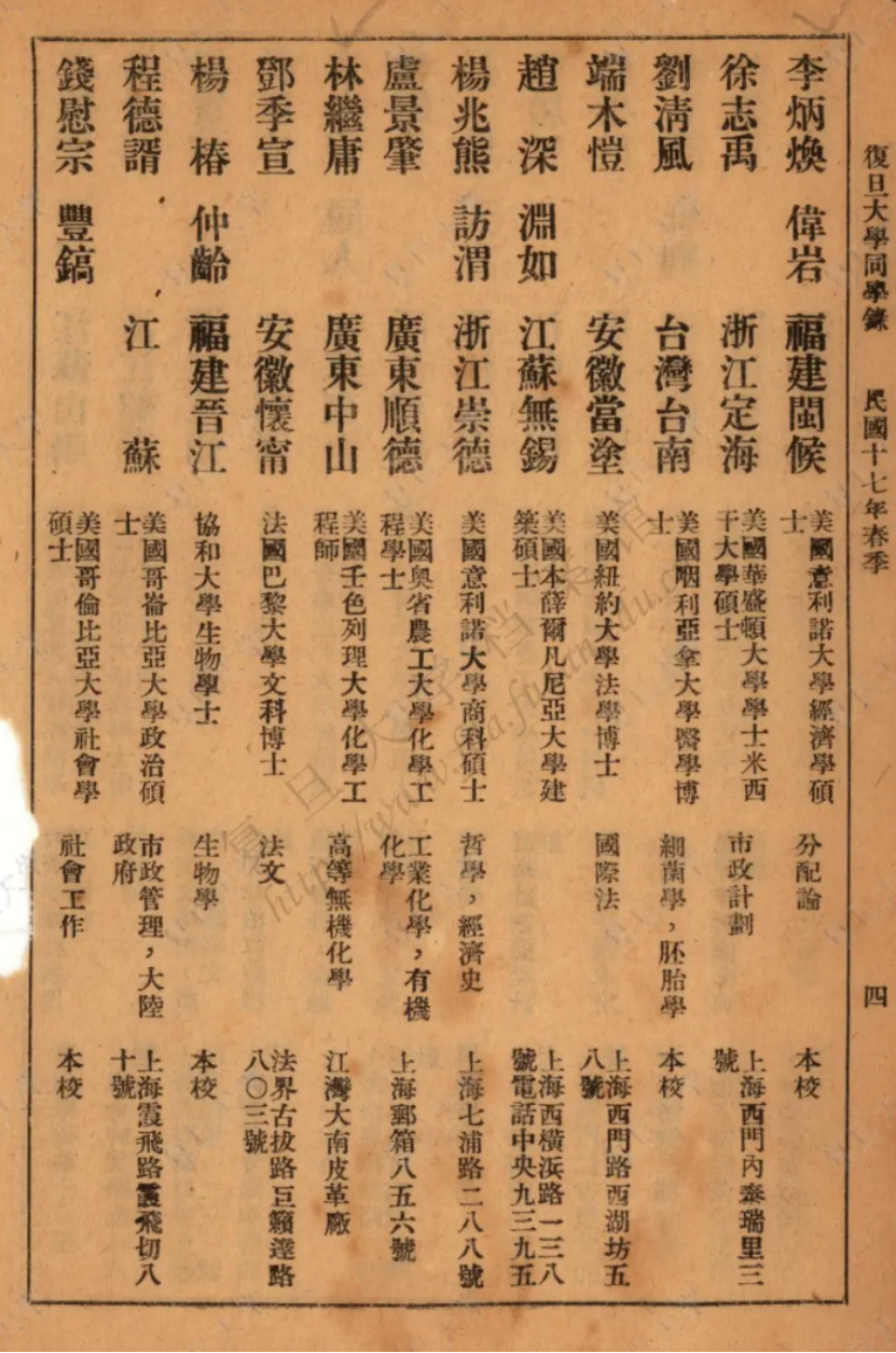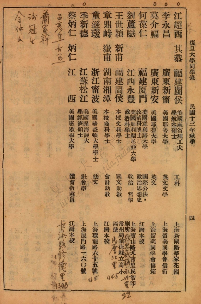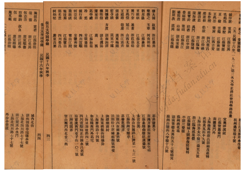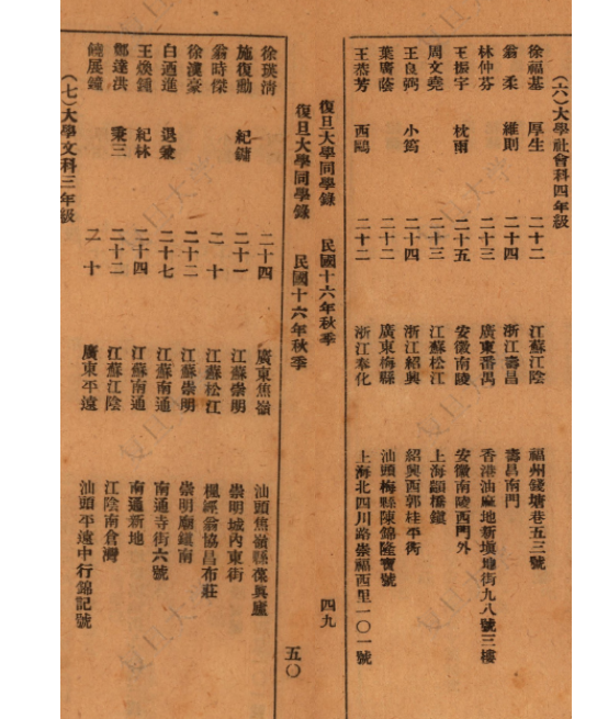 復旦大學民三二秋畢業同學通訊録(1943年秋季毕业同学录)