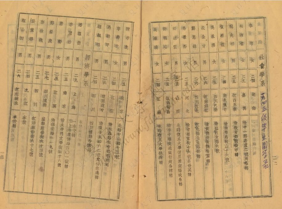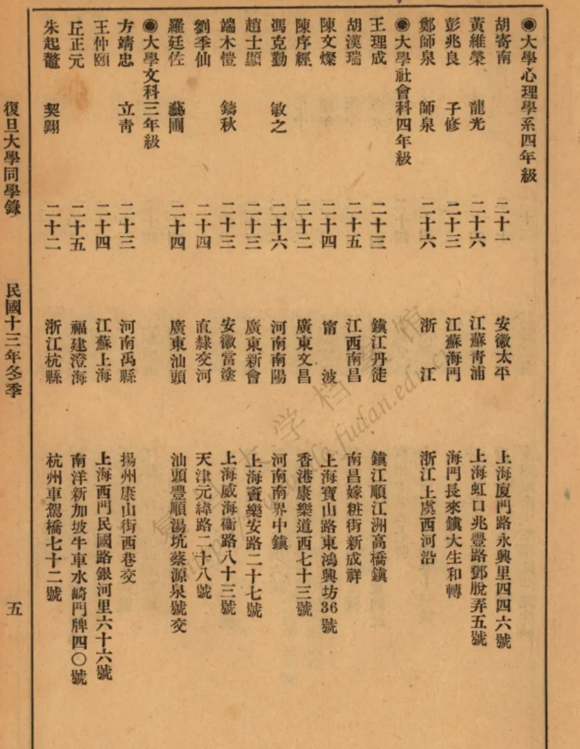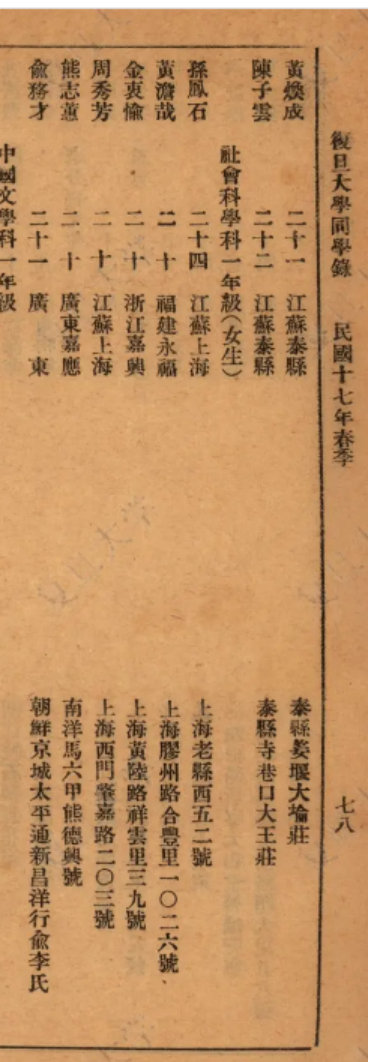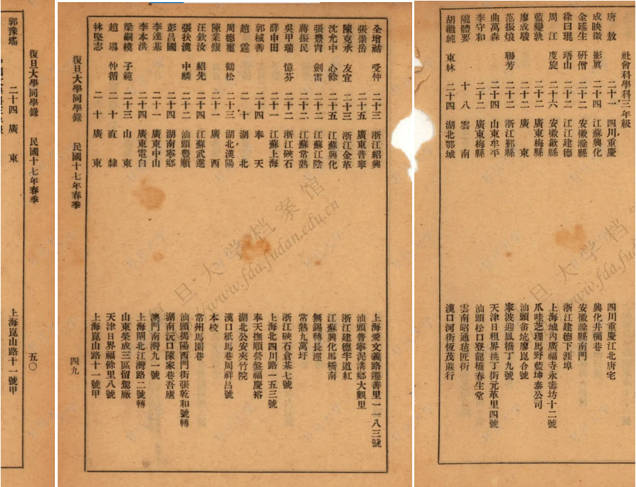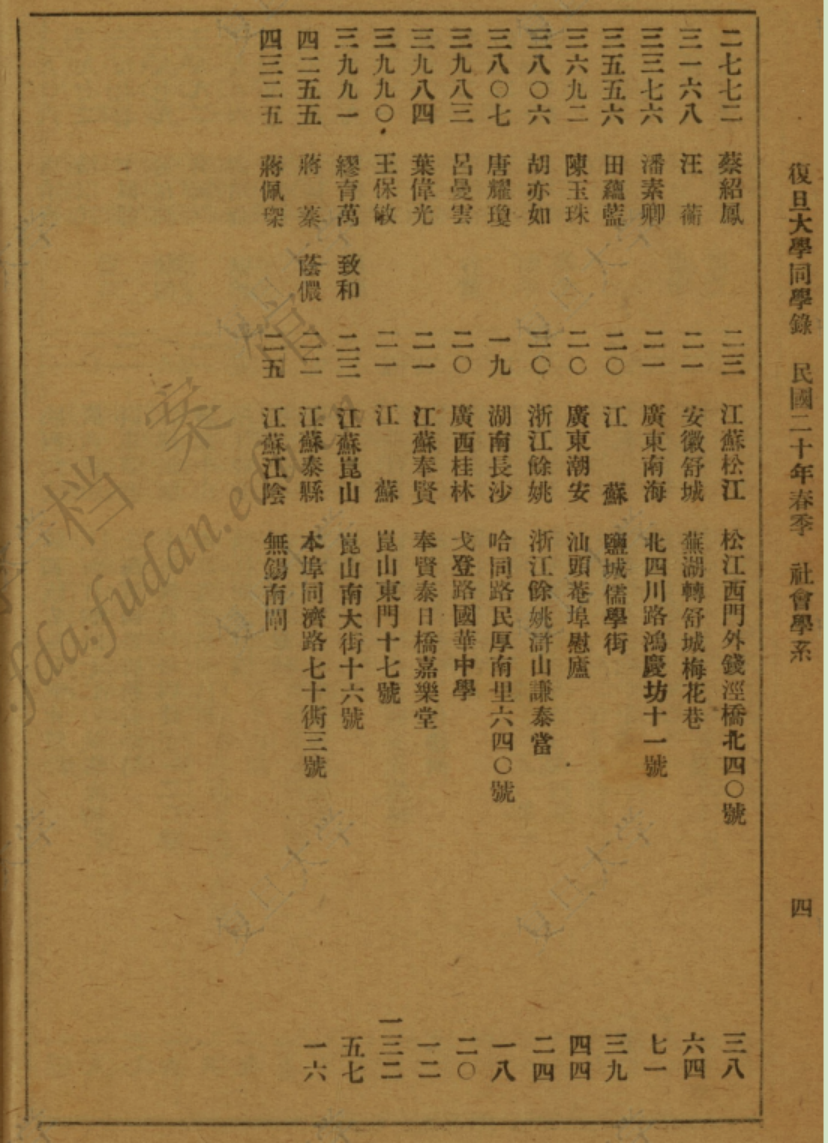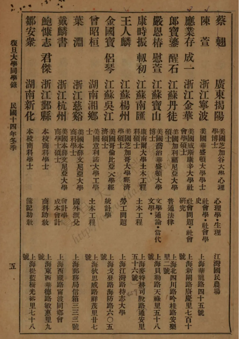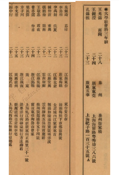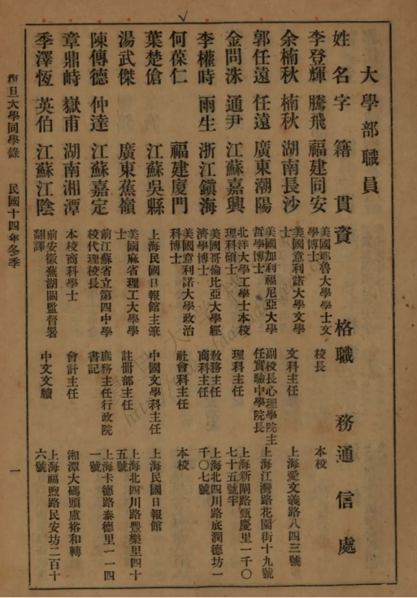 復旦大學民三二秋畢業同學通訊録(1943年秋季毕业同学录)