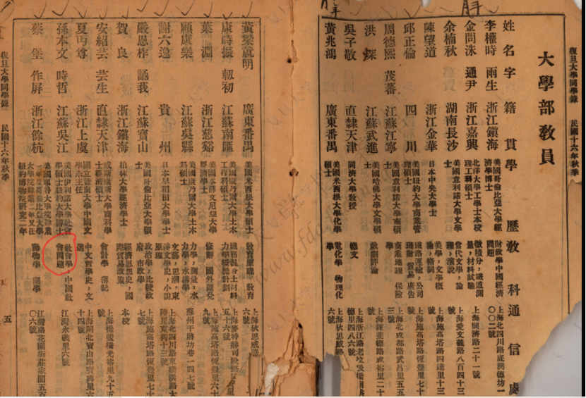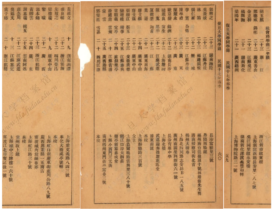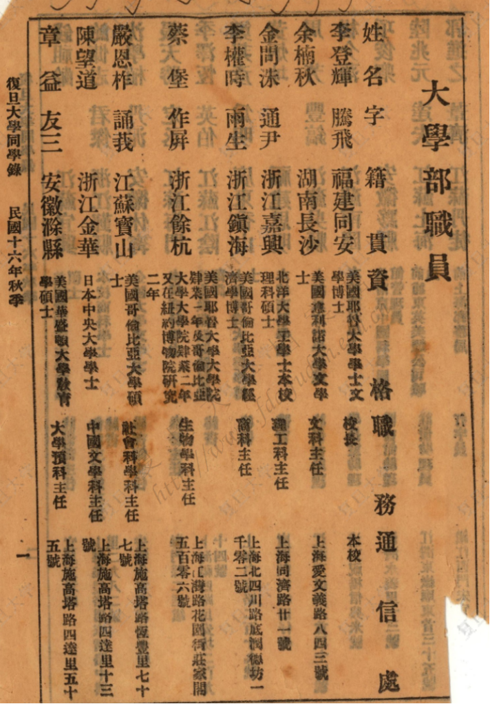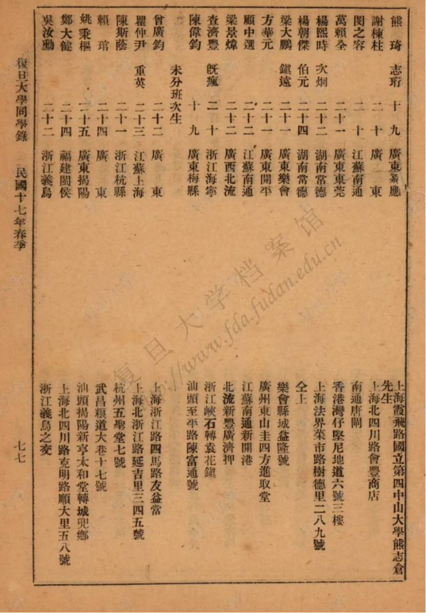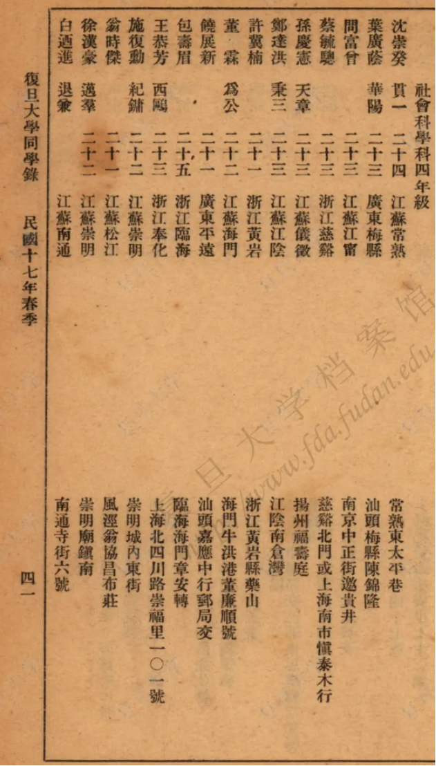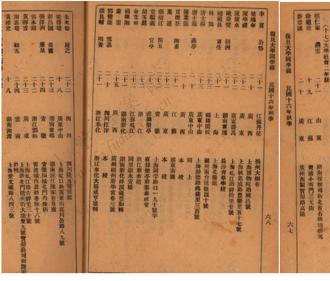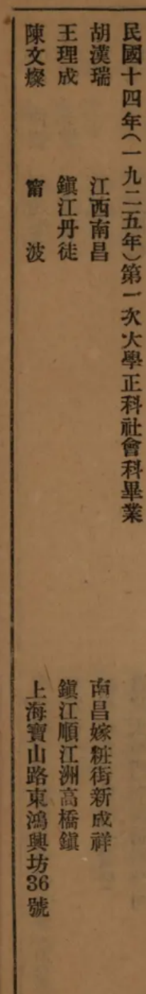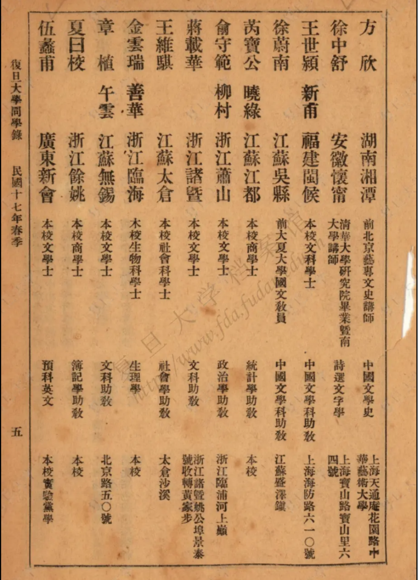復旦大學民三二秋畢業同學通訊録(1943年秋季毕业同学录)