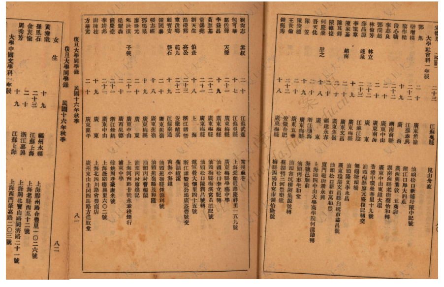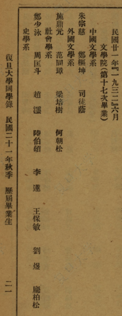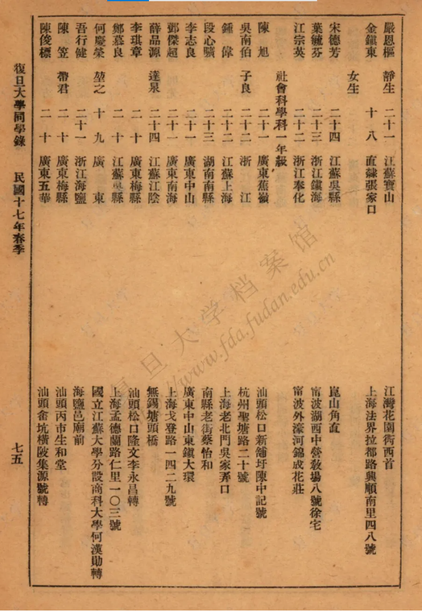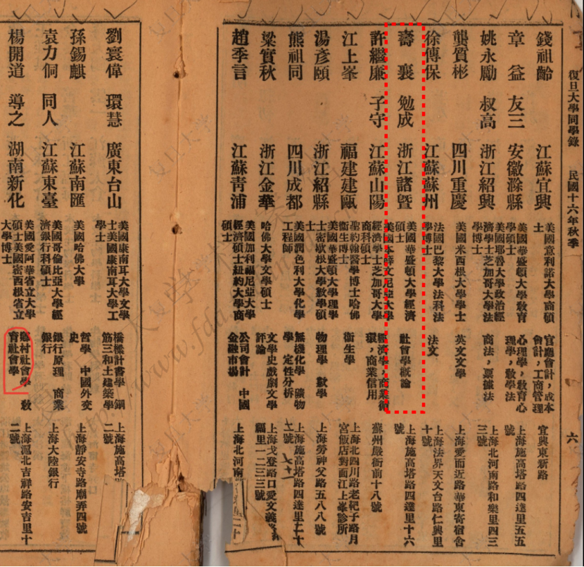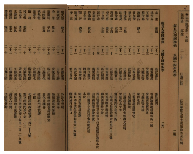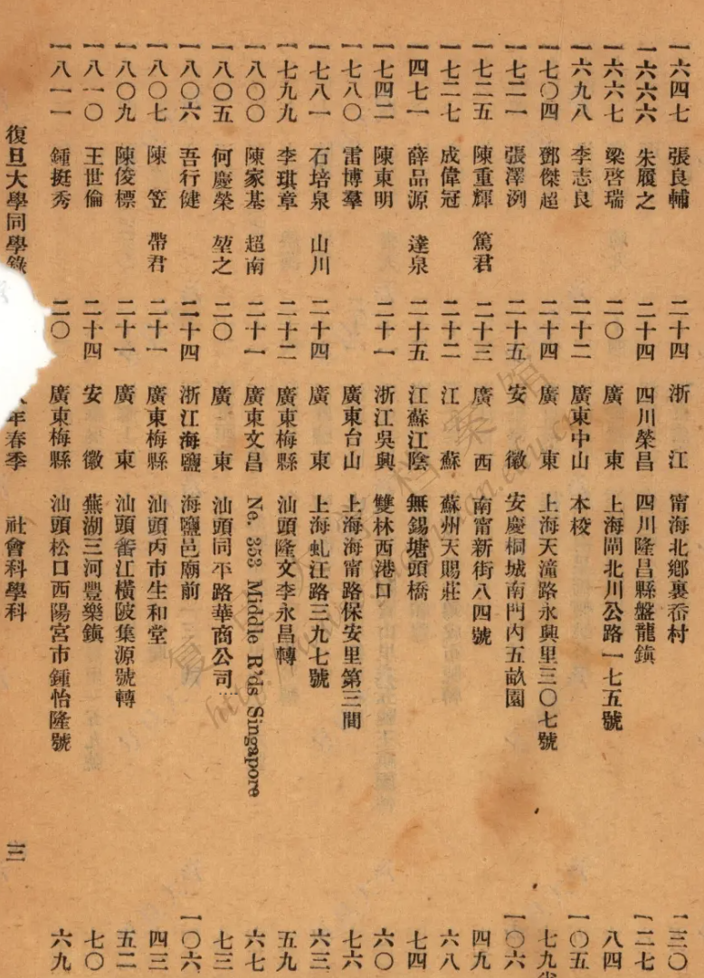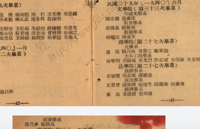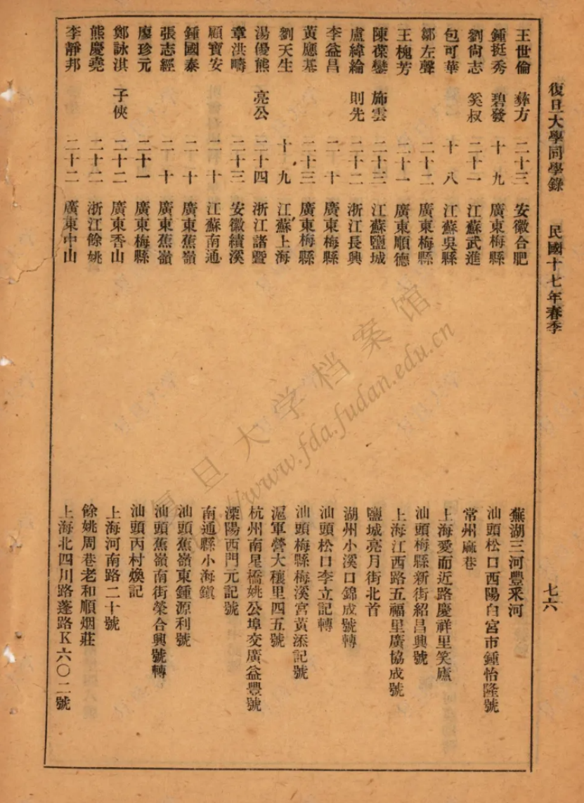 復旦大學民三二秋畢業同學通訊録(1943年秋季毕业同学录)
