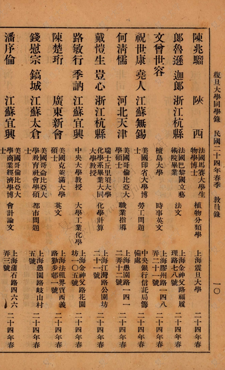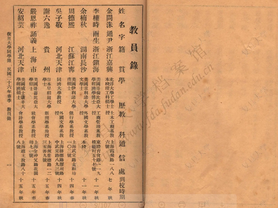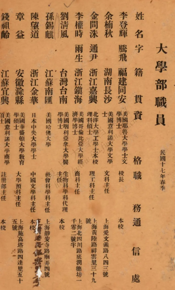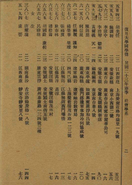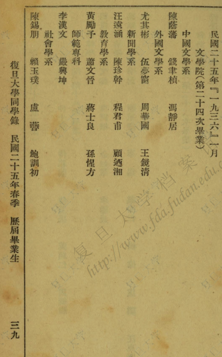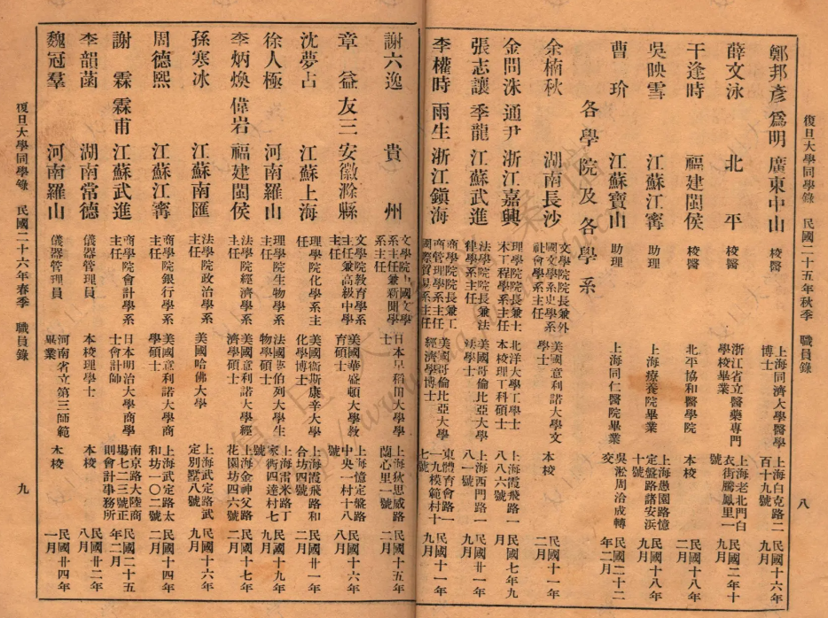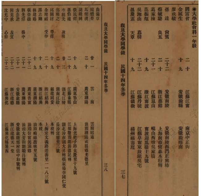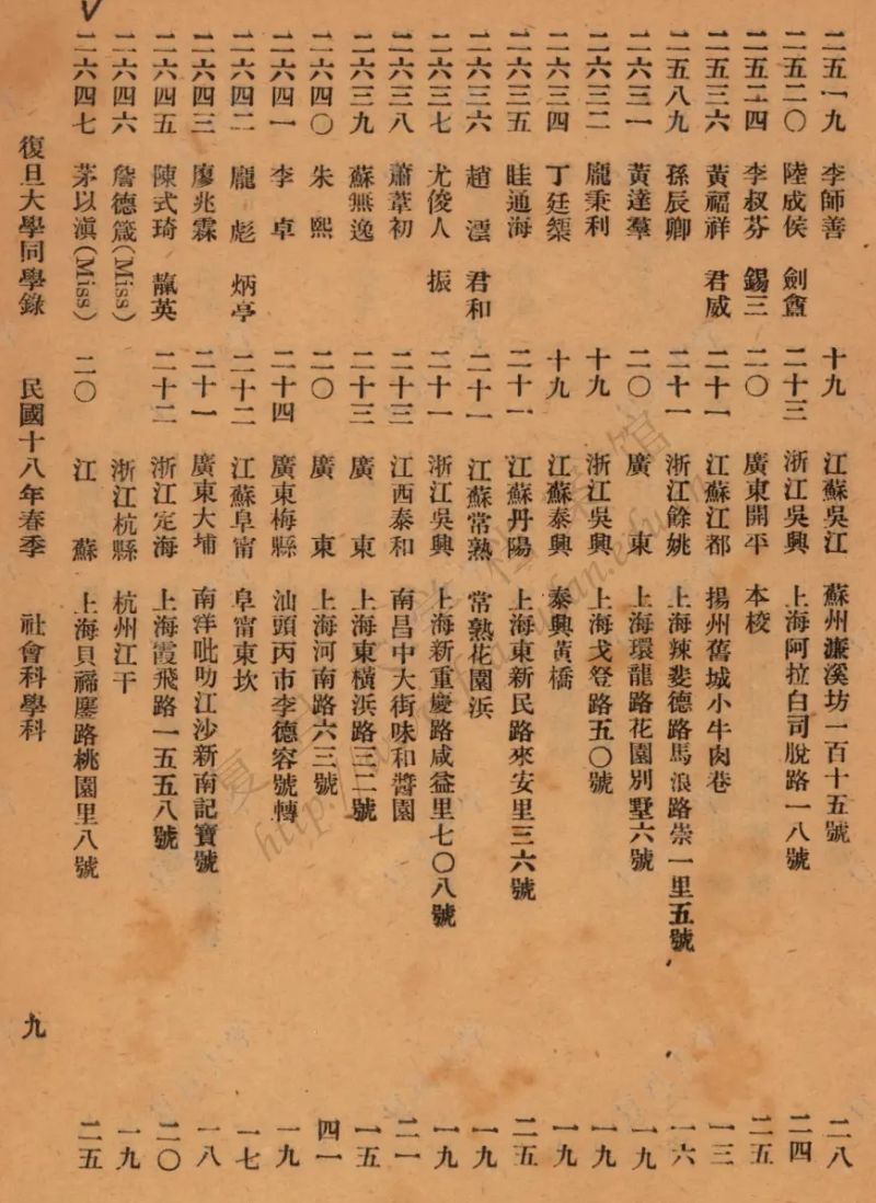 復旦大學民三二秋畢業同學通訊録(1943年秋季毕业同学录)
