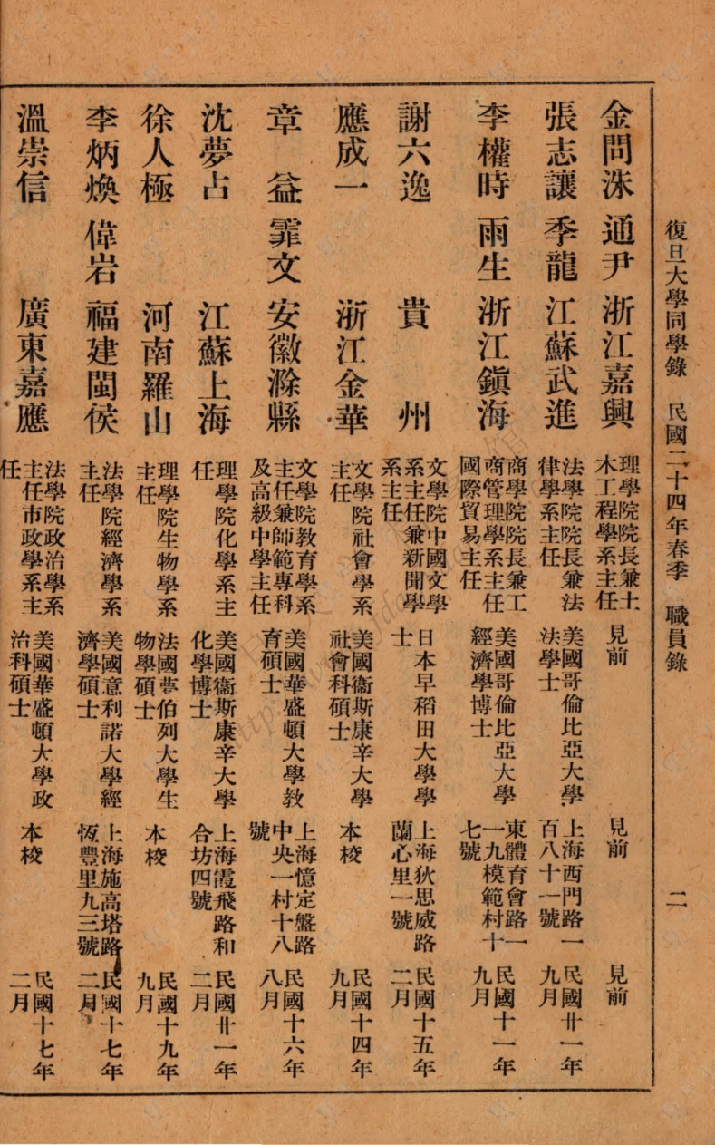 1914年 据当年冬季《复旦公学同学录》载,教员新增王宠惠,美国耶鲁大学法学博士,讲授国际公法、法学通论、论理、伦理、群学。