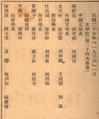 毕业生人数与名单:1949年社会系毕业生共有 10名,其完整名单如上表一所示。