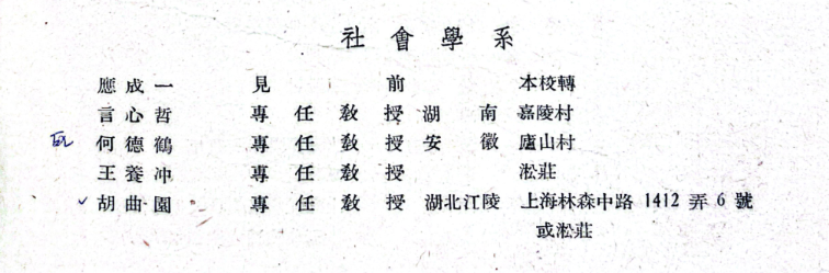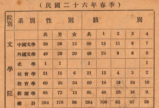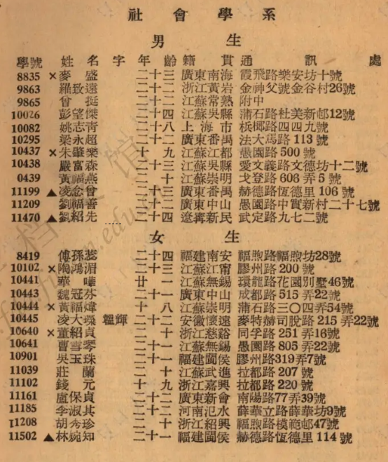 在校生规模:在1948年秋季学期(即1949学年之前),社会学系注册在校生为 26名。这26人构成了1949学年开学初的学生主体,其中部分学生于1949年毕业。