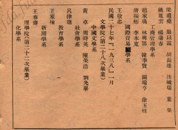 梁绍文 浙江黄岩人 时任教师 本校社会学毕业