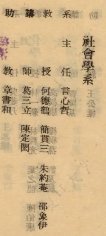 解放后,本系有了极大的改进。首先,由于同洲大学哲学系的并入,成立了哲学组。同时,我们明确了新的学习方向,扬弃了资产阶级的社会学,确立了以辩证唯物主义与历史唯物主义为指导的核心。哲学组侧重辩证唯物主义的研究,所开课程有《工农唯物论》《自然辩证法》《中国思想史》《马列文献研究》《毛泽东思想》等多种;社会系则偏重历史唯物主义的研究,所开课程有《新社会学》《社会主义史》《苏联社会》《社会保险》《社会调查》《劳工福利》等多种。