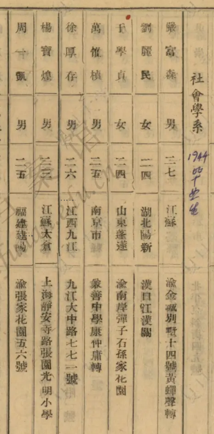 | 雷洁琼 | 女 | 40 | 广东 | 教授 | 专任 | 社会病理/中国社会问题/社会思想史 | 1942年秋 |