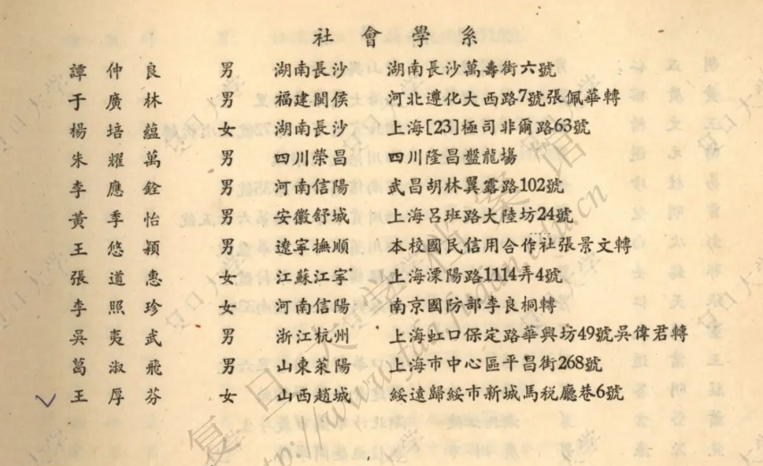 来源:《1949级复旦大学毕业纪念册_可搜索.pdf》 - “法学院” -> “社会系”名单。