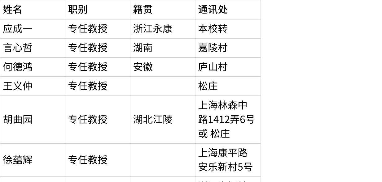 | 应成一 | 男 | 49 | 浙江 | 教授 | 专任 | 社会学劳工问题/西方社会思想史/民族学 | 1926年秋 |