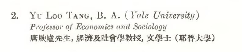 TANG SOONG, B.A. (Michigan, U. S. A.)Professor of Education and History
